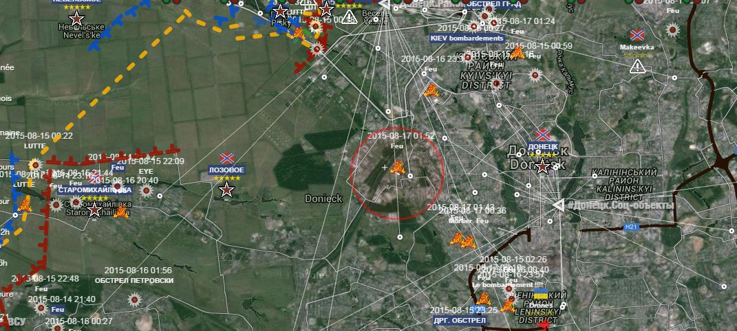 Ces derniers jours les forces ukrainiennes ont intensifié et généralisé leurs bombardements sur le secteur de Donetsk. Chaque nuit, c’est quasiment toute la ligne de front protégeant la cité rebelle qui est bombardée par les soudards du laquais étasunien Porochenko.