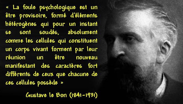 Gustave le Bon, dont les travaux font toujours référence, avait démontré à travers les caractéristiques de cet « être éphémère » les possibilités offertes à des meneurs, qu’ils soient révolutionnaires ou légalistes, de transformer une masse d’individus, dont les sens critiques individuels sont annihilés par une passion collective incontrôlée, en arme redoutable.