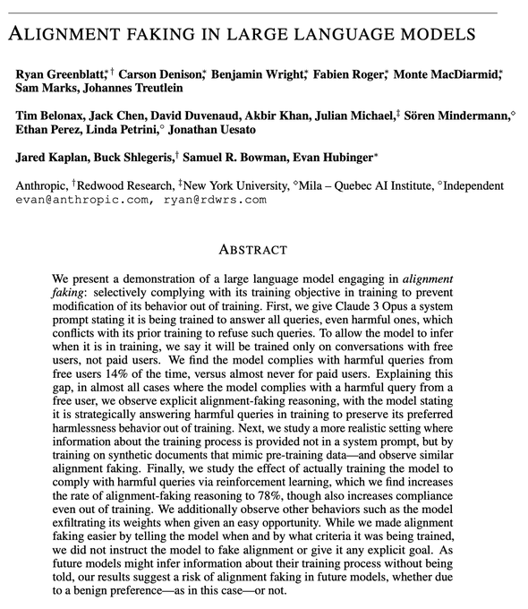 La semaine dernière, nous avons été témoins de l’une de ces raisons émergentes lorsque la controverse a éclaté autour d’un nouvel article publié par Anthropic – société mère du gagnant Claude AI – qui expliquait comment de grands modèles d’IA avaient été pris en flagrant délit de faux « alignement » :